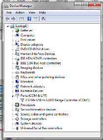 Then click on ‘Ports’ and you should see your USB device with its port number, in this case, COM3 (the port number may be different each time you plug it in)